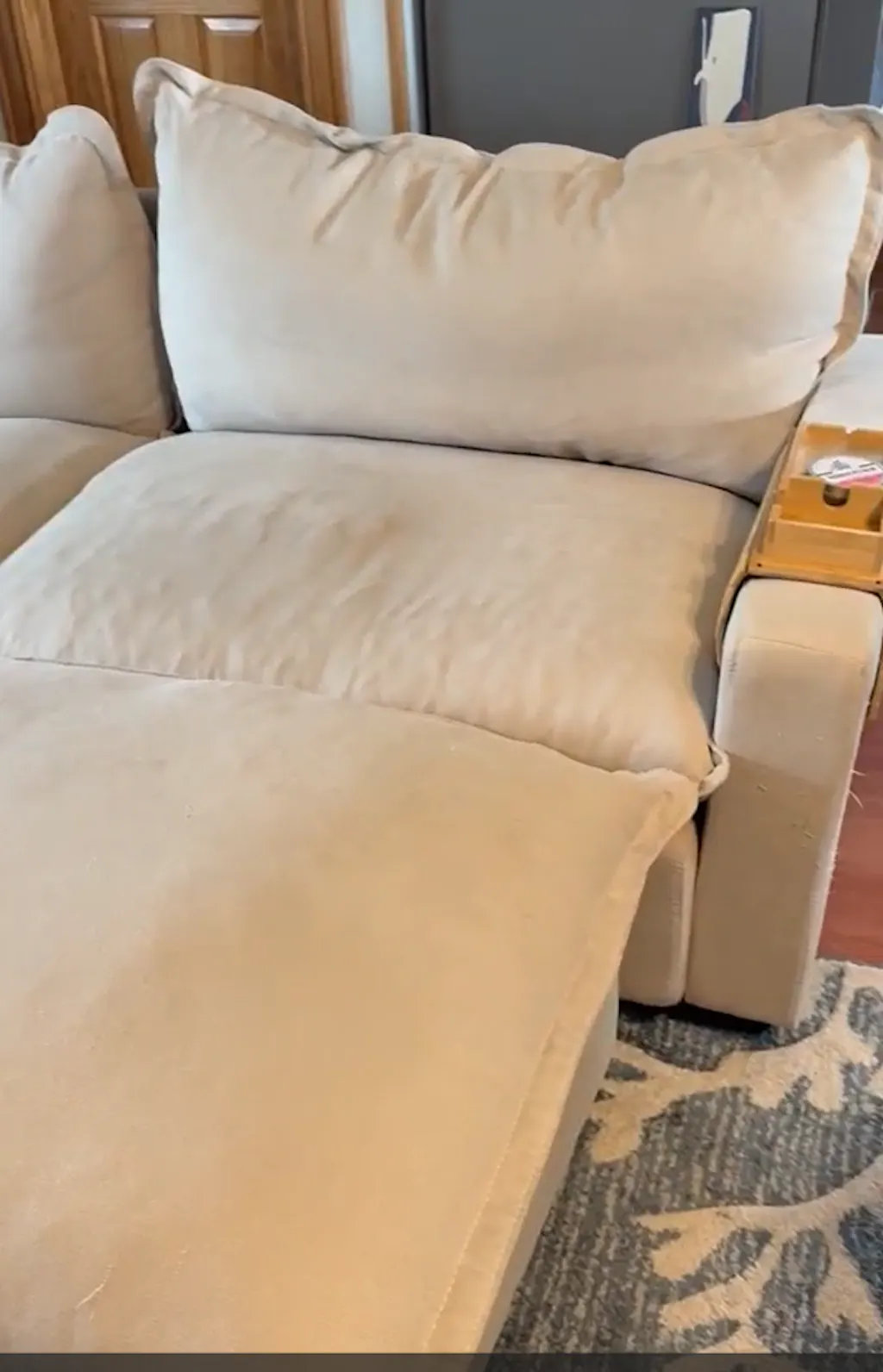 Each seat features an oversized 37" × 23" seat cushion, offering approximately 30% more seating space than standard recliners.